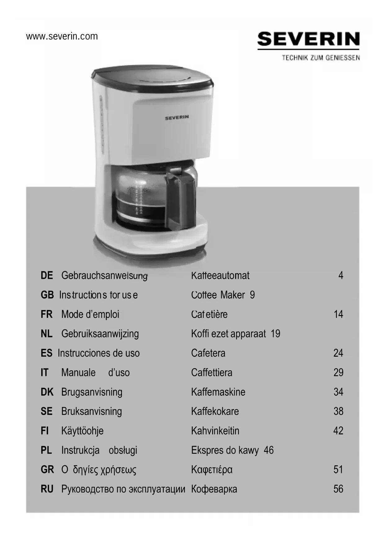 Retrouvez gratuitement la notice de l'appareil KA 4489 SEVERIN au format PDF.