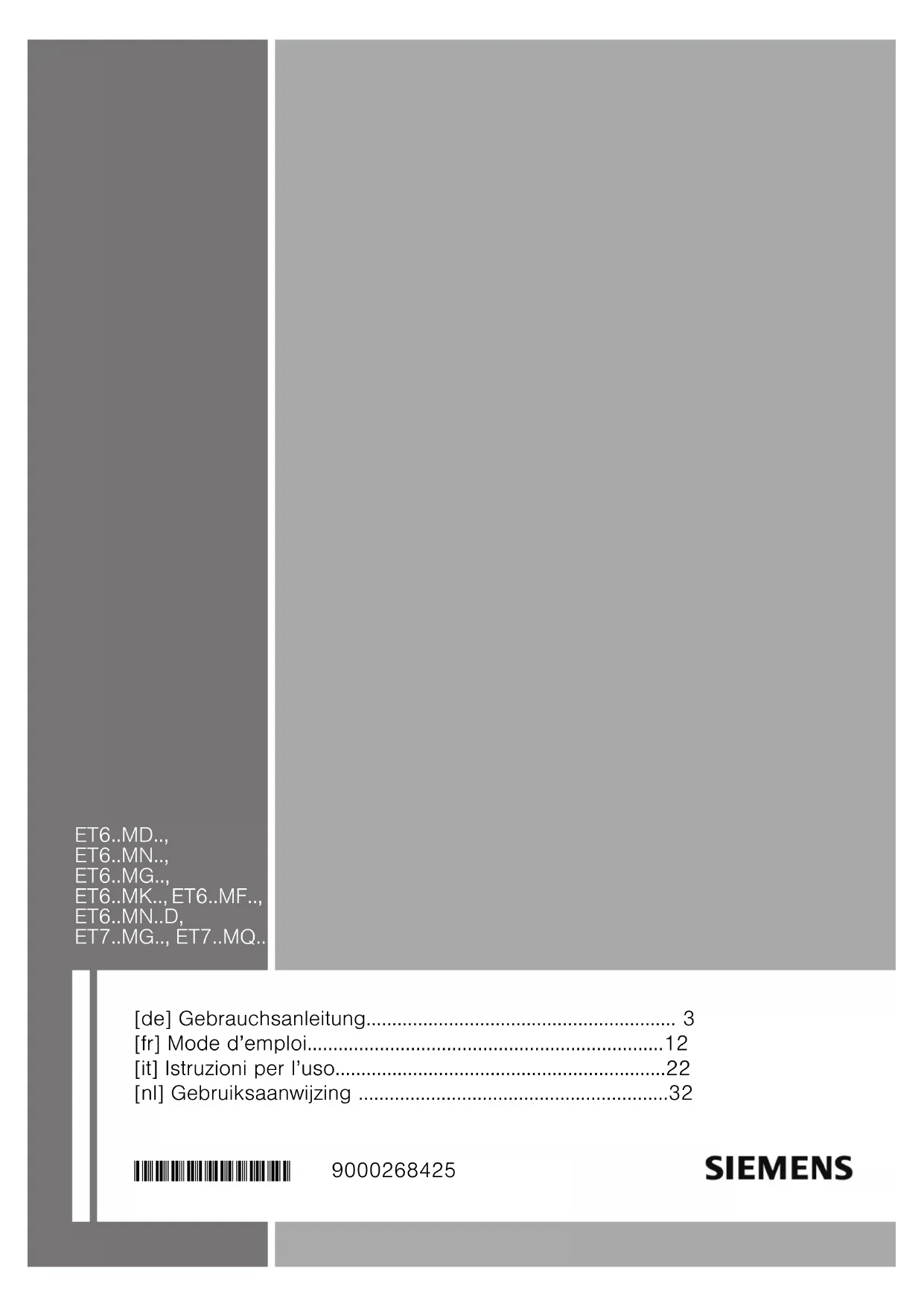Retrouvez gratuitement la notice de l'appareil ET675MF11 SIEMENS au format PDF.
