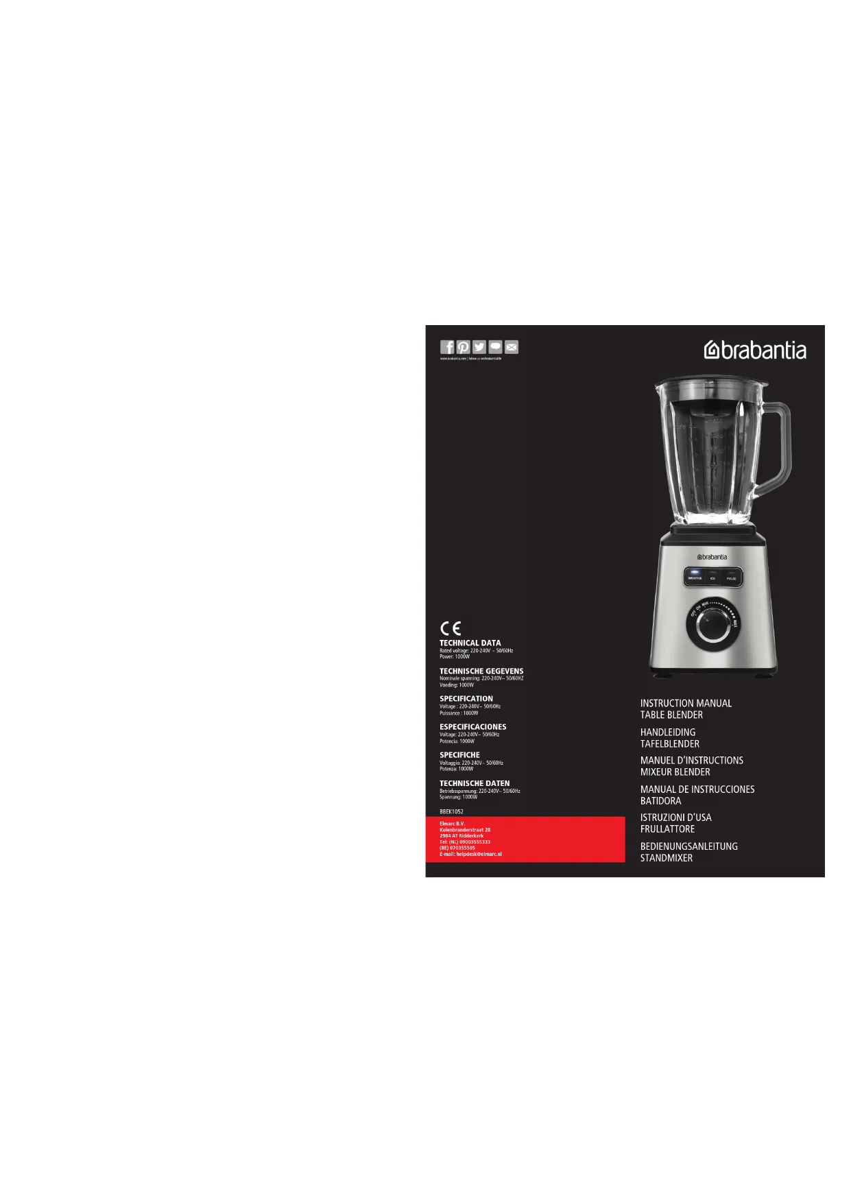 BBEK1052 - Blender BRABANTIA - Notice d'utilisation et mode d'emploi gratuit