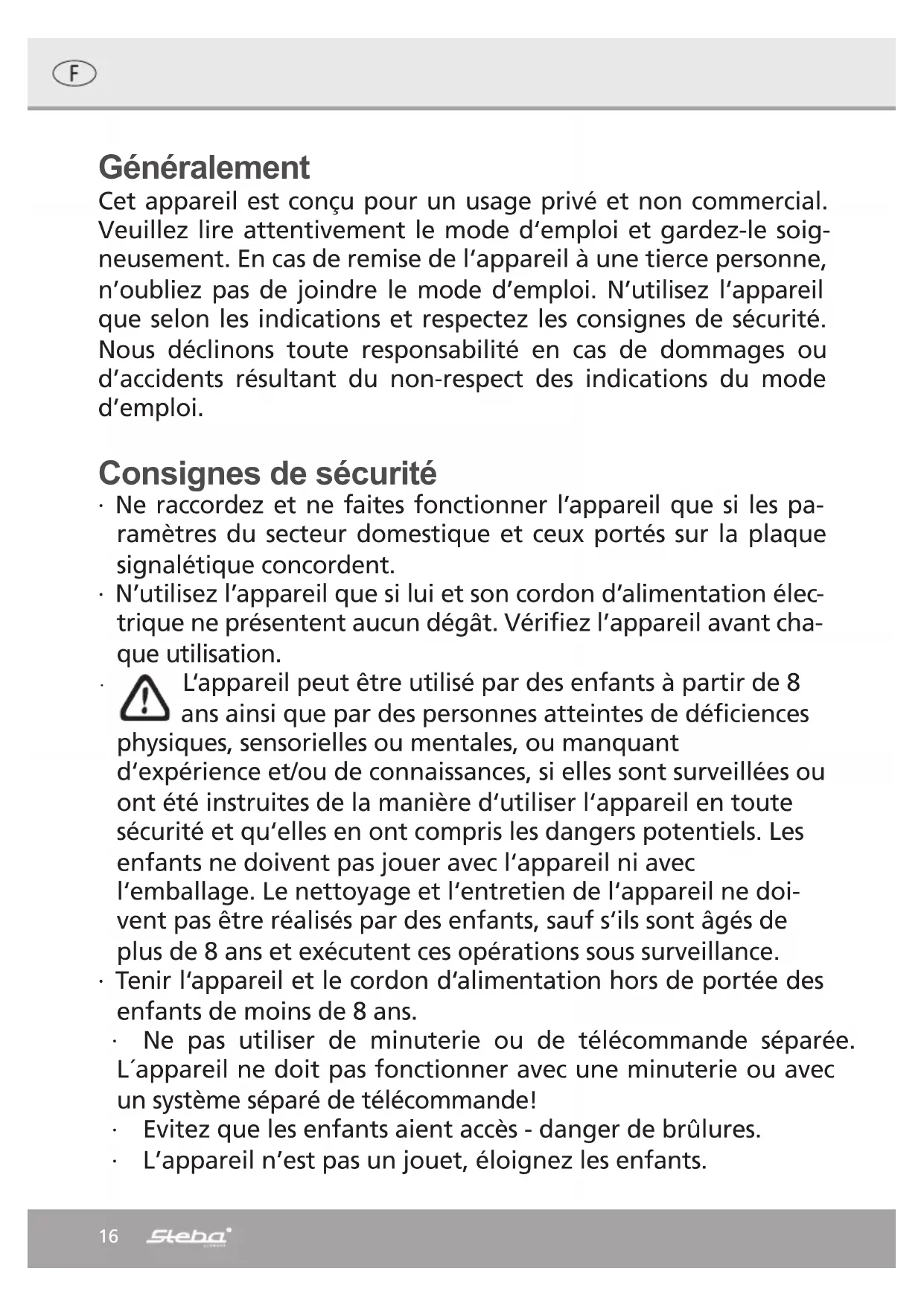Retrouvez gratuitement la notice de l'appareil FG 70 STEBA au format PDF.