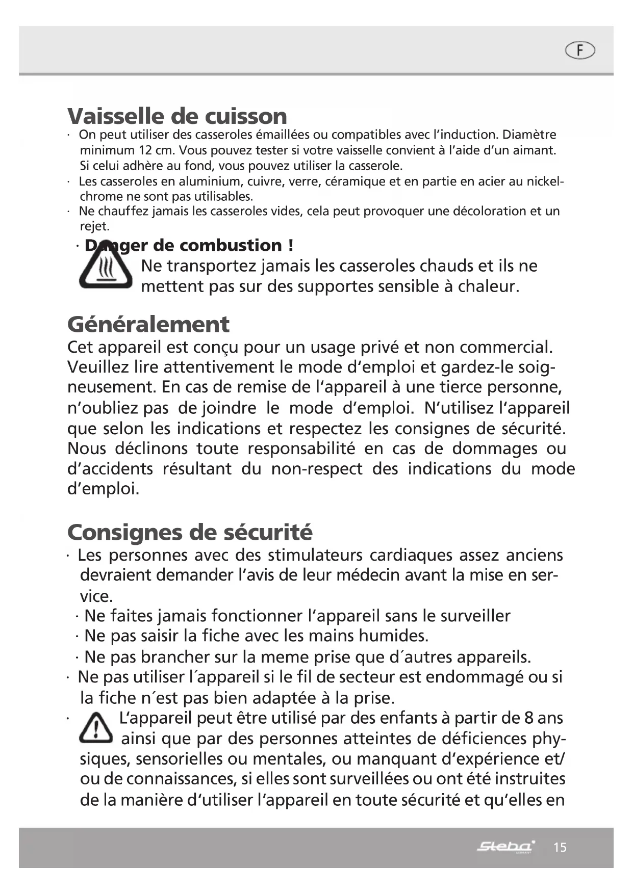 IK 70 - Poêle STEBA - Notice d'utilisation et mode d'emploi gratuit
