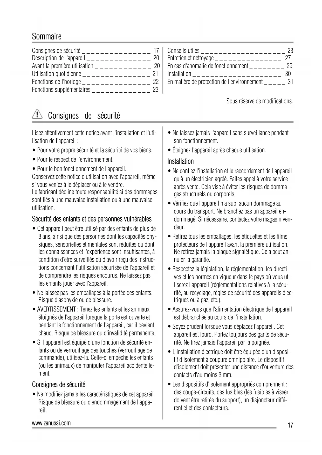 www.zanussi.com• Les dispositifs de protection doivent être fixés de telle