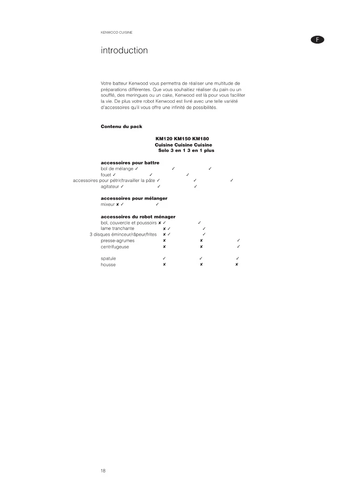 | accessoires pour pêtrir/travailler la pâte √ | ✓ | ✓ | ||||