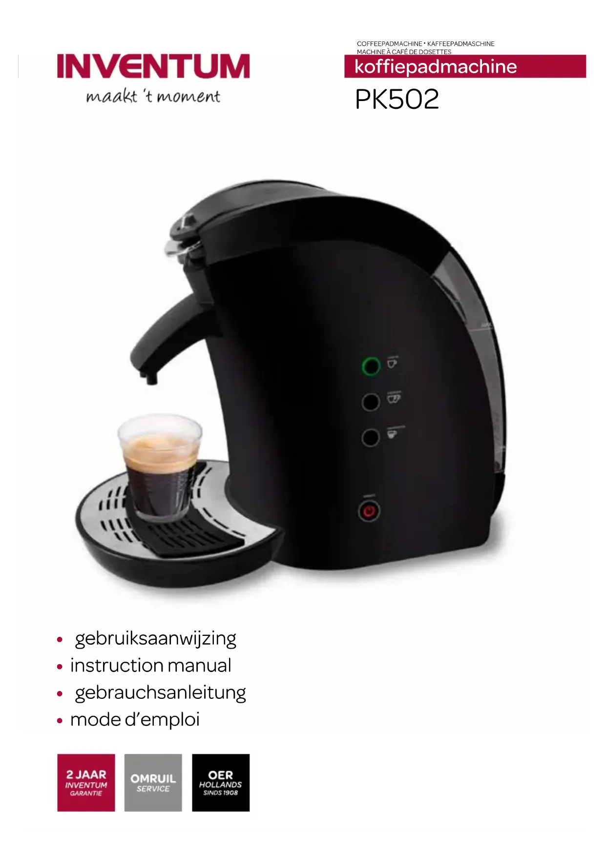 PK502 - Machine à café INVENTUM - Notice d'utilisation et mode d'emploi gratuit