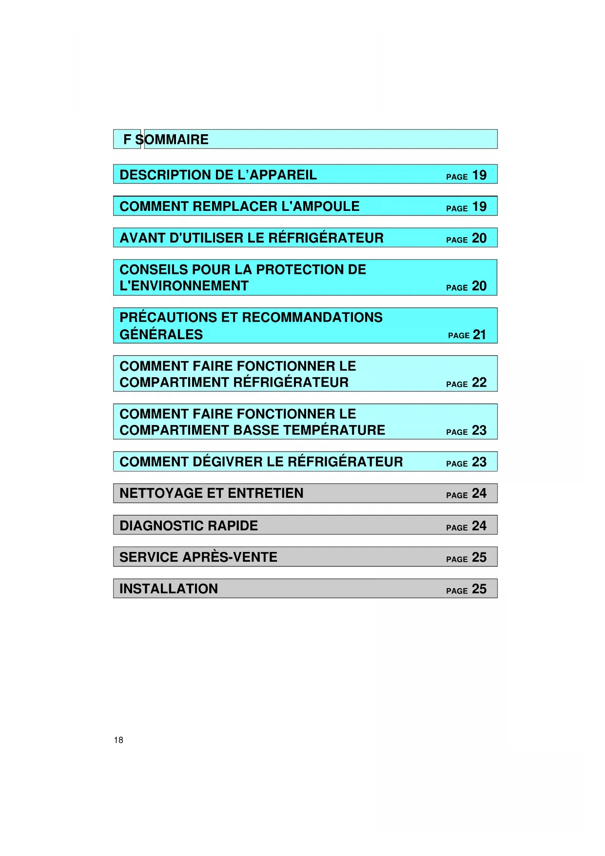 AVANT D'UTILISER LE RÉFRIGÉRATEUR CONSEILS POUR LA PROTECTION DE L'ENVIRONNEMENT21