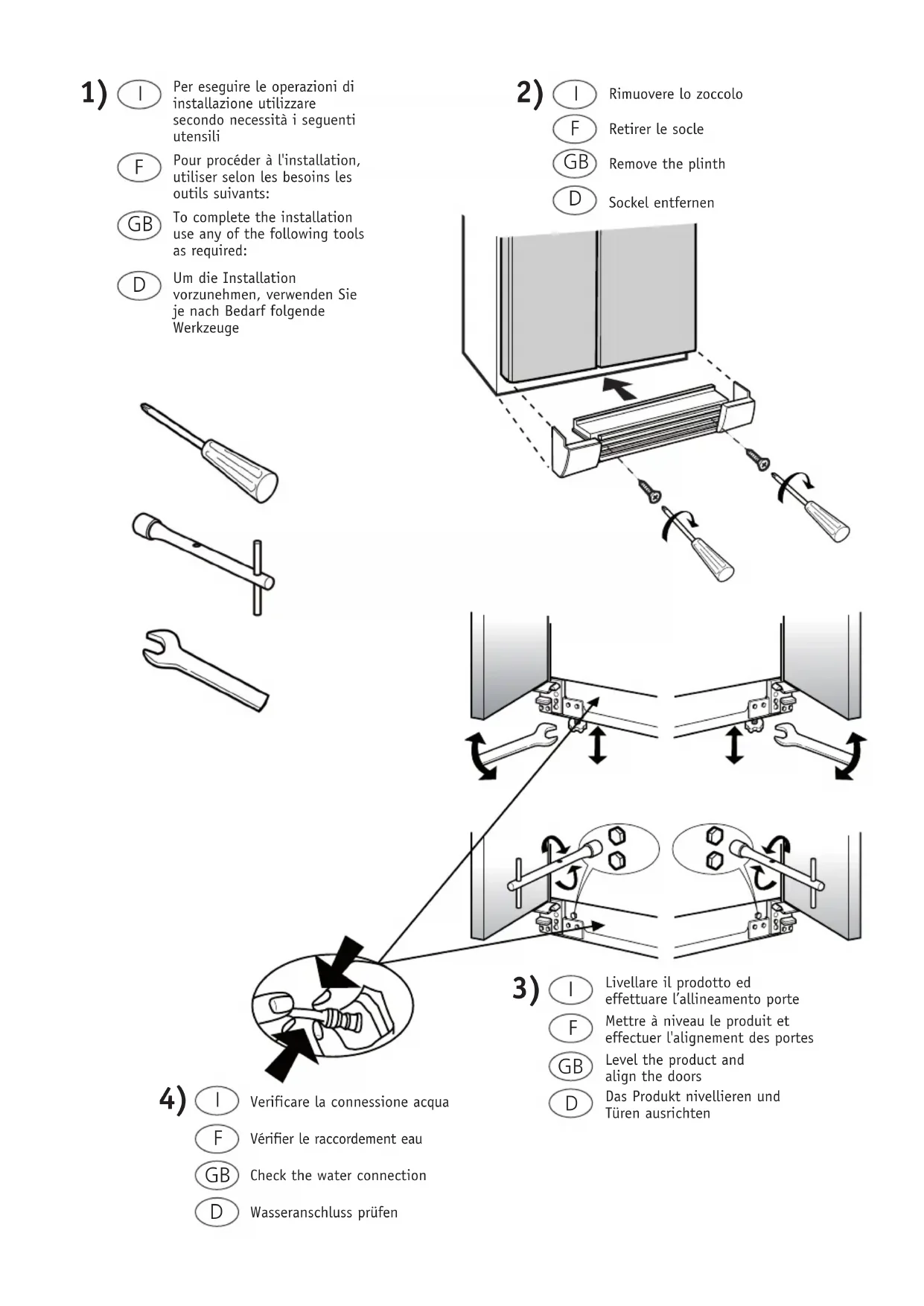 - MISE A NIVEAU DES PORTES (si nécessaire): voir schéma E - F du manuel