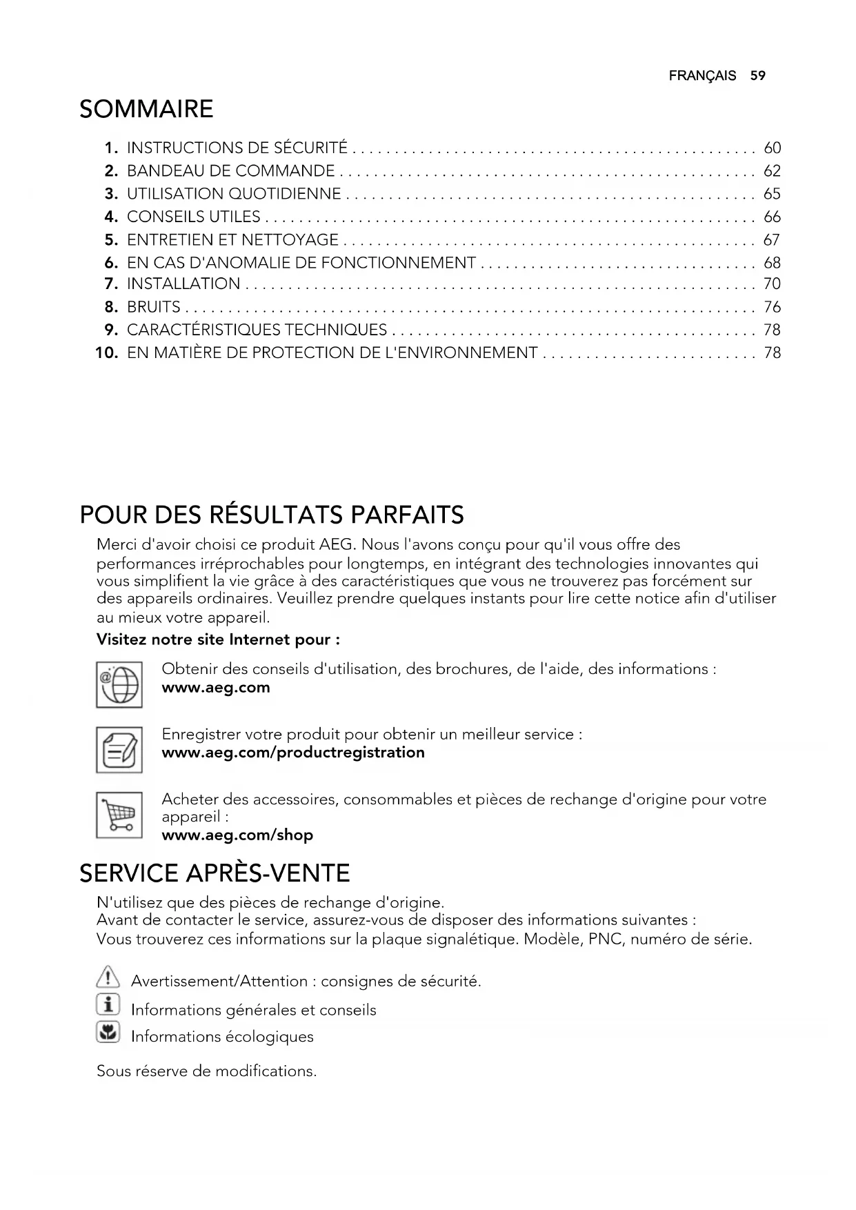 POUR DES RÉSULTATS PARFAITS Merci d'avoir choisi ce produit AEG. Nous l'avons conçu pour qu'il vous offre des
