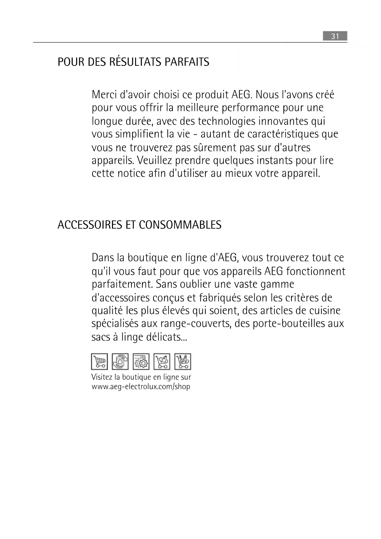 ACCESSOIRES ET CONSOMMABLES Dans la boutique en ligne d'AEG, vous trouverez tout ce