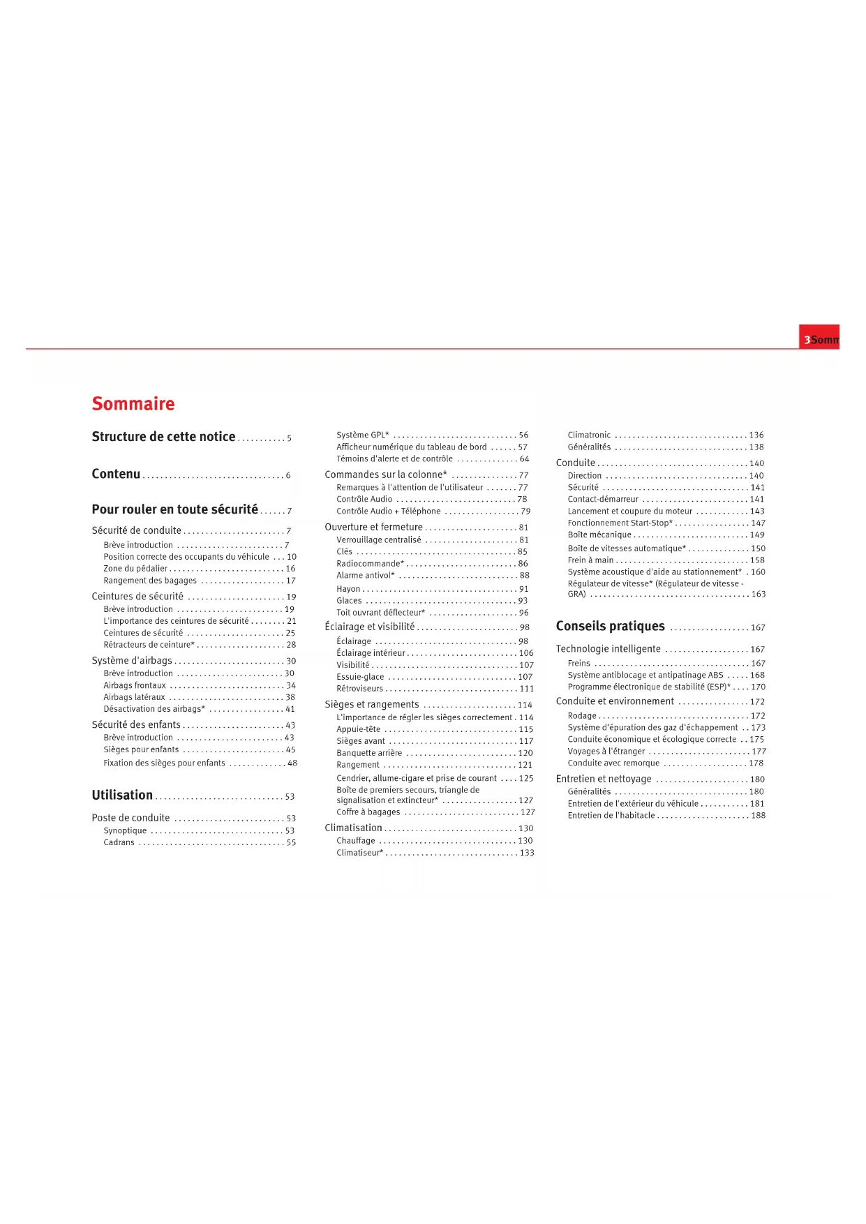 - Este papel está fabricado con celulosa blanqueada sin cloro. © SEAT S.A. - Reimpresión: 15.04.11 Portada IBIZA SC_interior_maquetación 03/03/11 17:15 Página 1Avant-propos Cette notice d'utilisation et les suppléments correspondants devront être lus attentivement afin de vous fami- liariser rapidement avec votre véhicule. En plus du soin et de l'entretien périodiques, une utilisation appropriée du véhicule contribue à conserver sa valeur. Pour des raisons de sécurité, tenez toujours compte des informations concernant les accessoires, les modifi- cations et les remplacements de pièces. Si vous vendez le véhicule, remettez à son nouveau propriétaire la documentation de bord dans son intégrali- té, car elle fait partie du véhicule.Sommaire Structure de cette notice p. 5