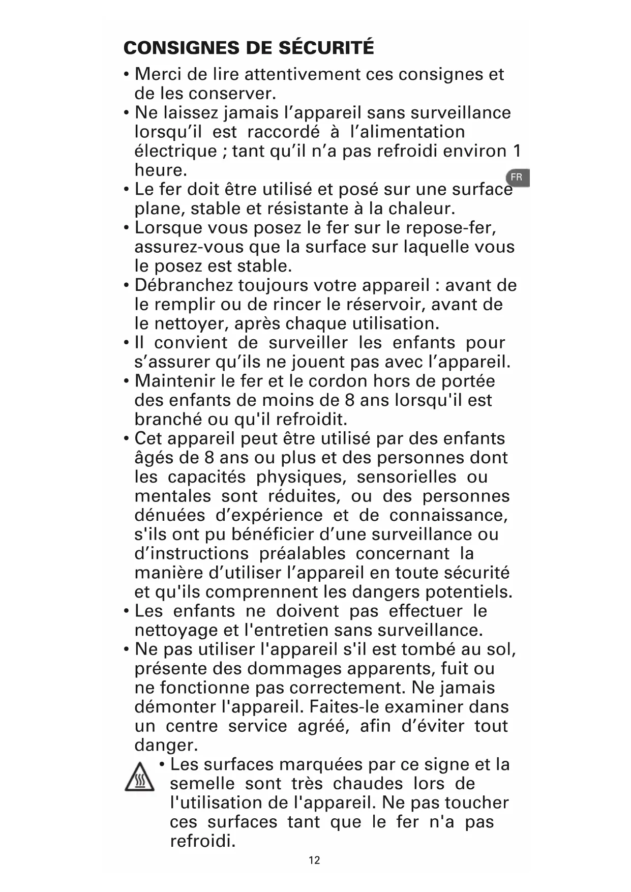 • Le fer doit être utilisé et posé sur une surface