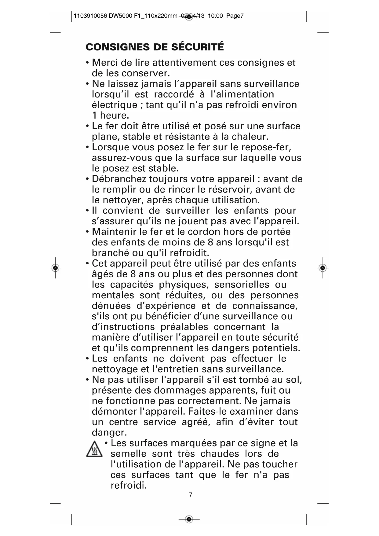 Focus DW5130 - Fer à repasser ROWENTA - Notice d'utilisation et mode d'emploi gratuit