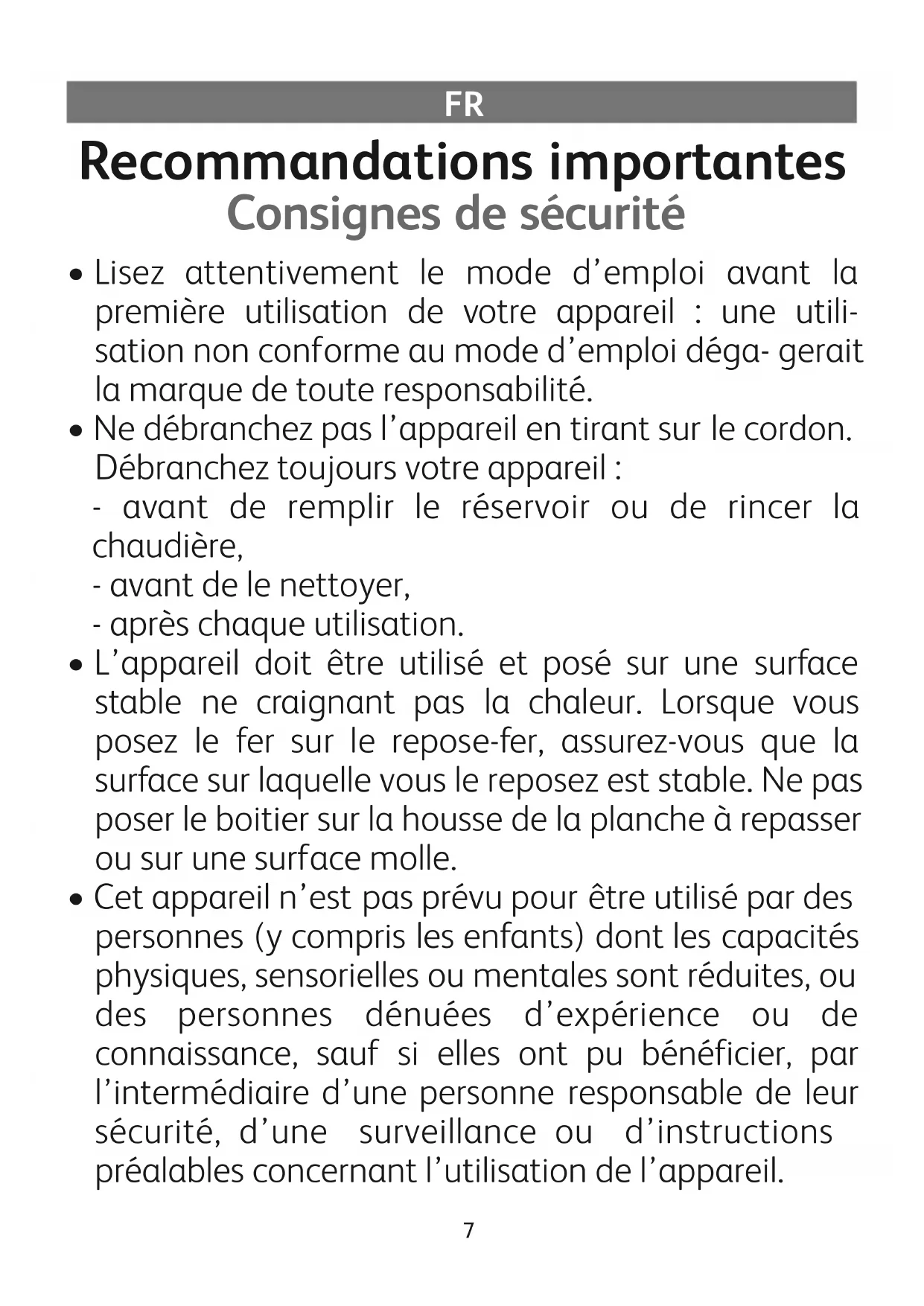 FR Recommandations importantes