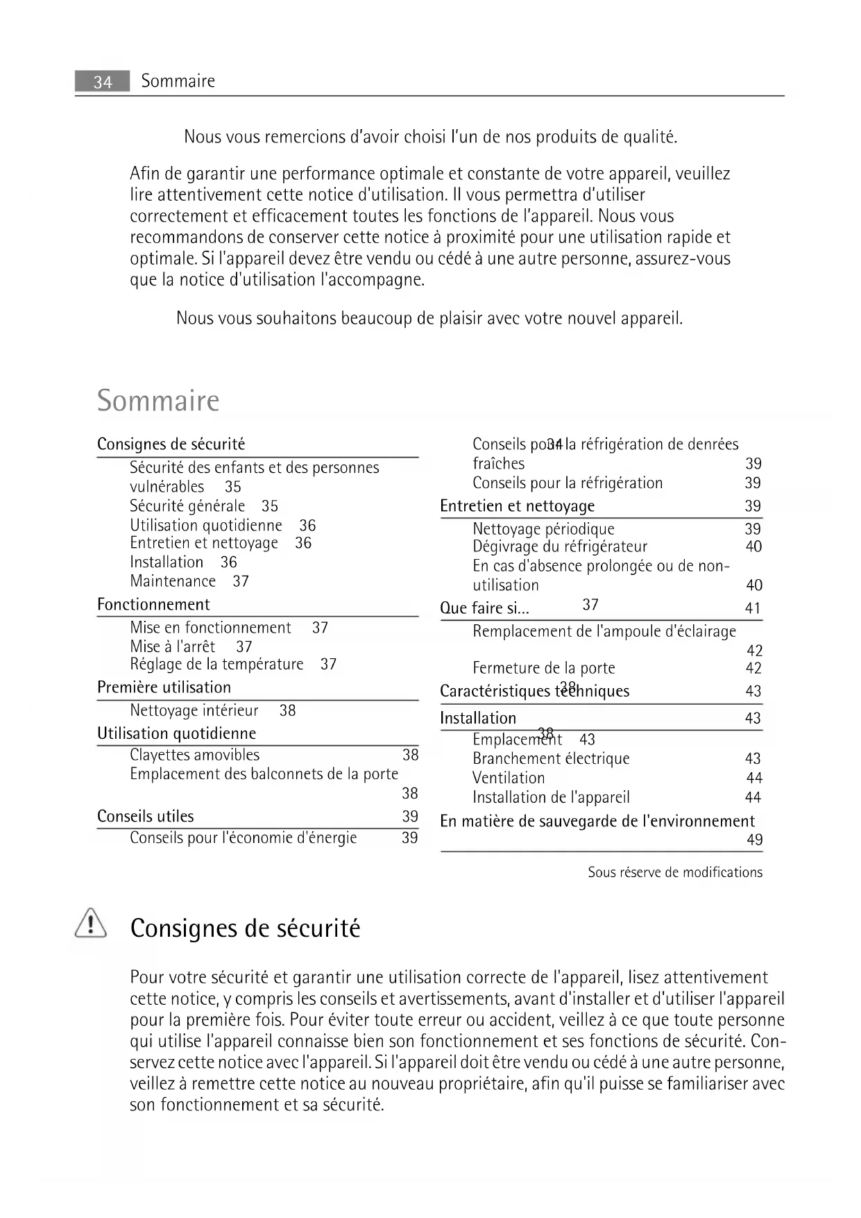 SommairePour la sécurité des personnes et des biens, conservez et respectez les consignes de sécurité