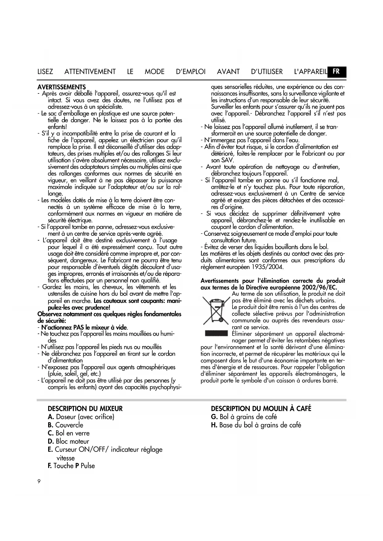 KF 8170 H - Blender DELONGHI - Notice d'utilisation et mode d'emploi gratuit
