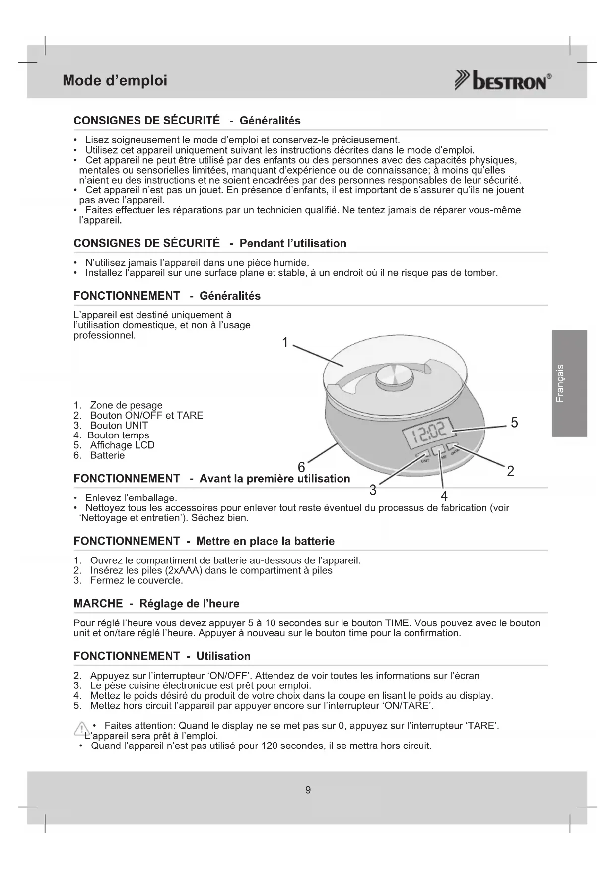 AKS140 - Balance de cuisine BESTRON - Notice d'utilisation et mode d'emploi gratuit