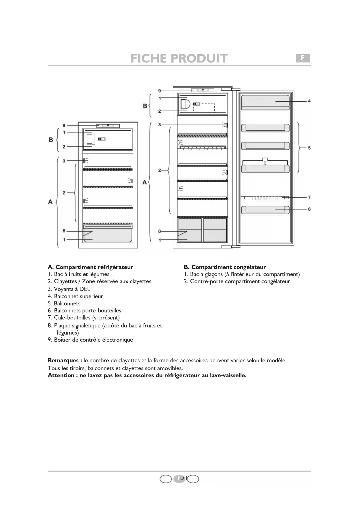 FICHE PRODUIT F FD IA. Indicateur de température réglée. Si la lettre A