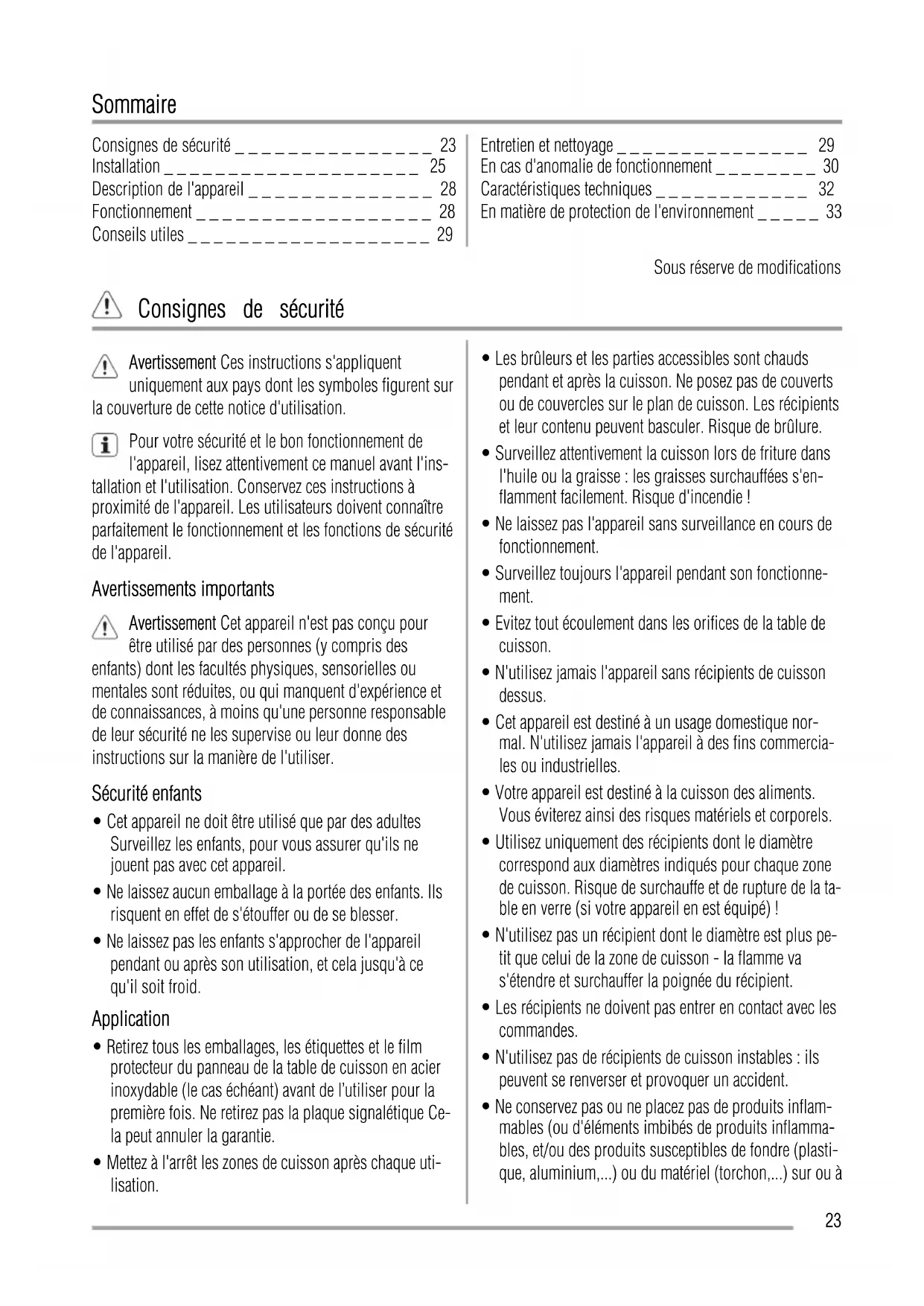 Consignes de sécurité _ _ _ _ _ _ _ _ _ _ _ _ _ _ _ 23