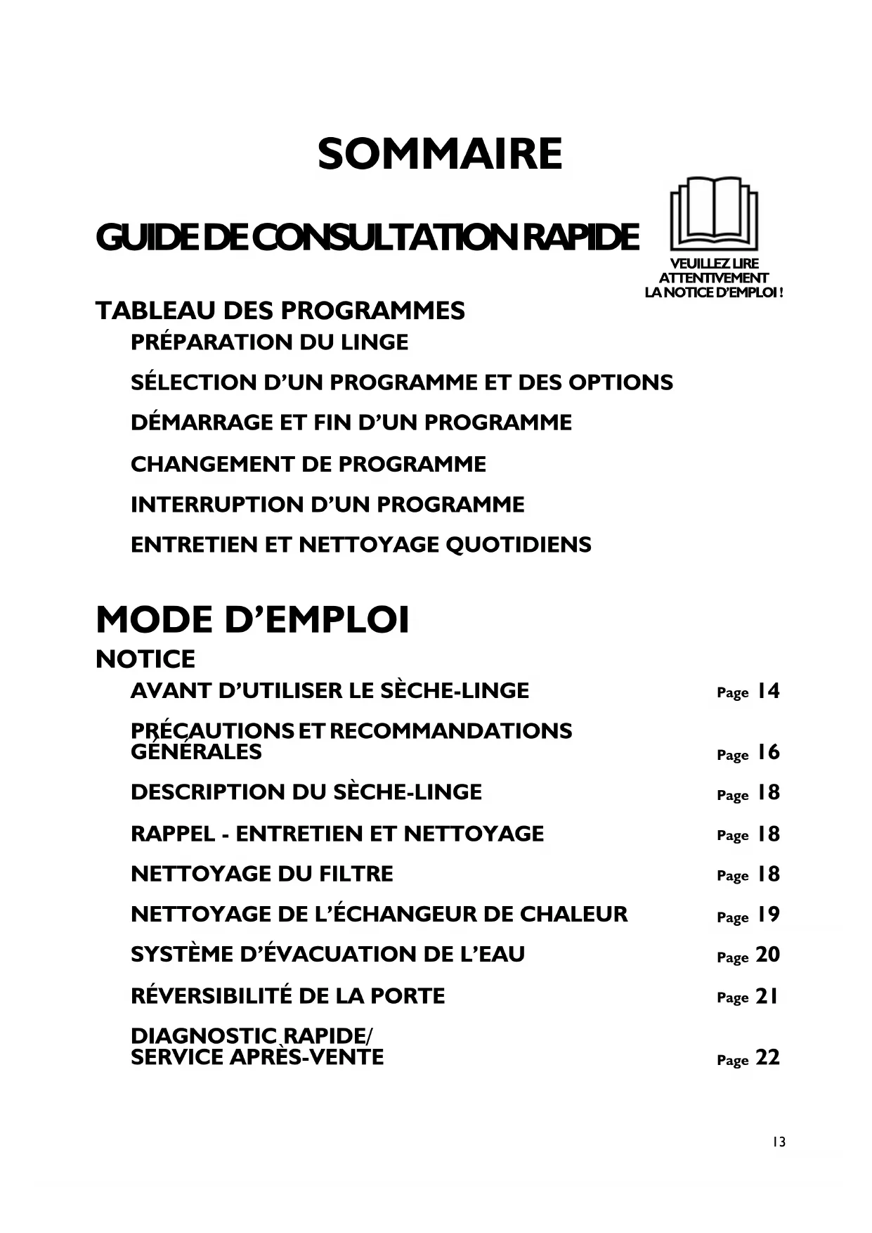 programmes avant d’utiliser le sèche-linge.