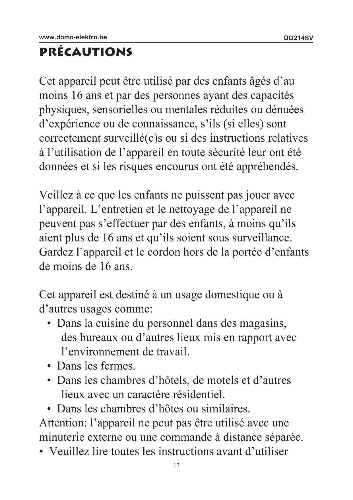 MODE D'EMPLOI DO214SV DOMO