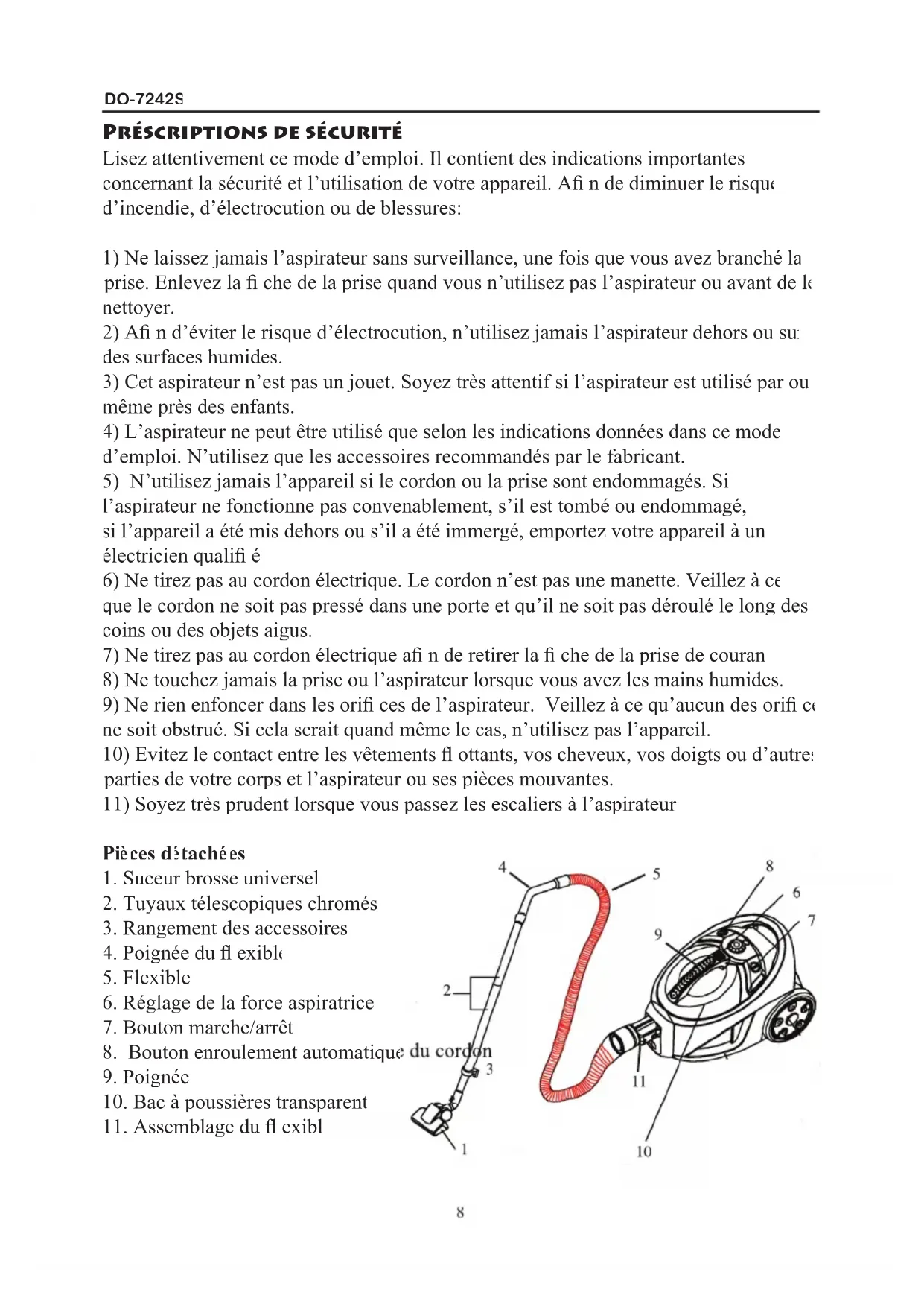 DO7242S - Aspirateur DOMO - Notice d'utilisation et mode d'emploi gratuit