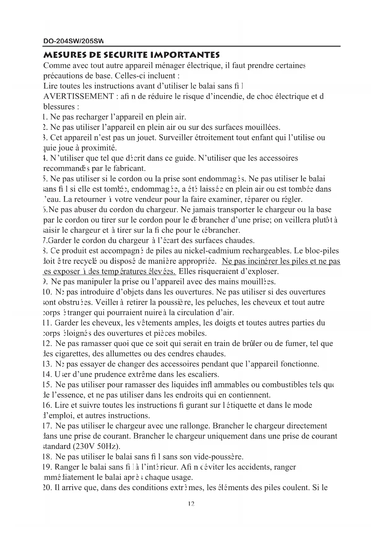 11DO-204SW/205SW MESURES DE SECURITE IMPORTANTES Comme avec tout autre appareil ménager électrique, il faut prendre certaines