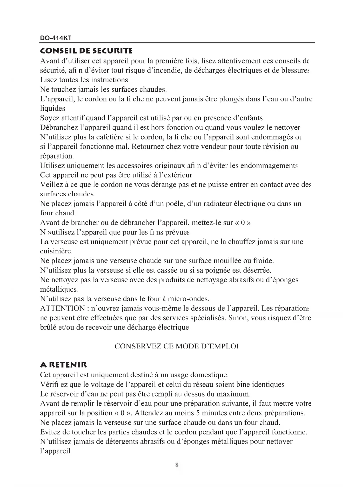 8DO-414KT LE CORDON : QUELQUES PARTICULARITES La cafetière est pourvue d’un cordon court pour éviter que vous ne tombiez.