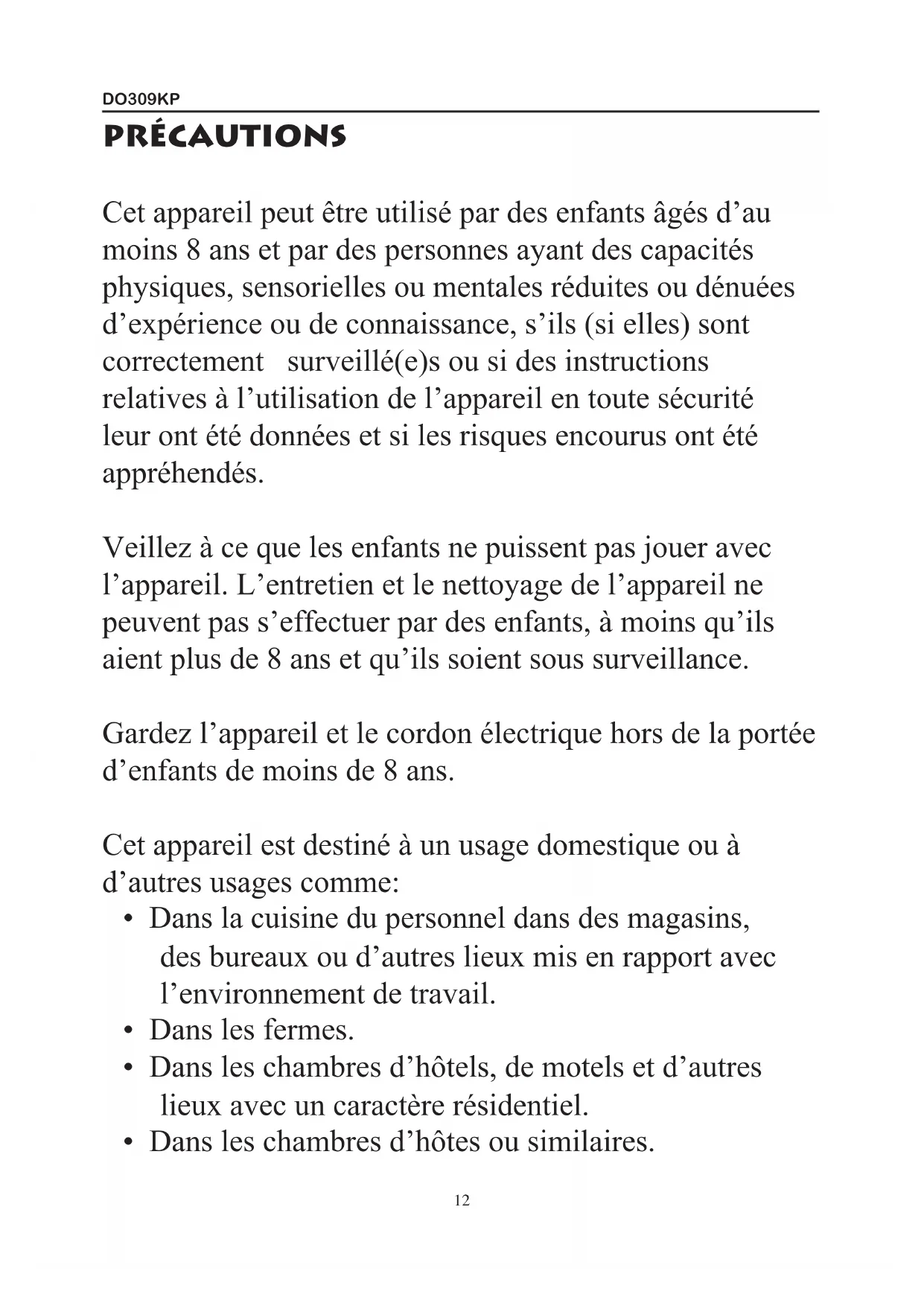 Retrouvez gratuitement la notice de l'appareil DO309KP DOMO au format PDF.