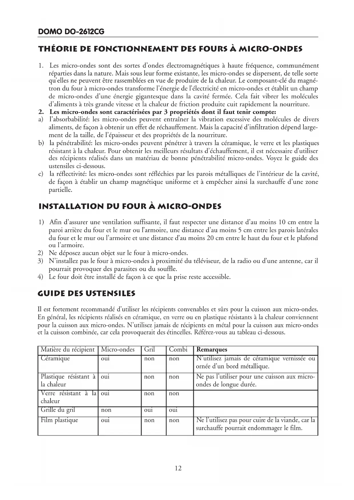 DO2612CG - Micro-ondes DOMO - Notice d'utilisation et mode d'emploi gratuit