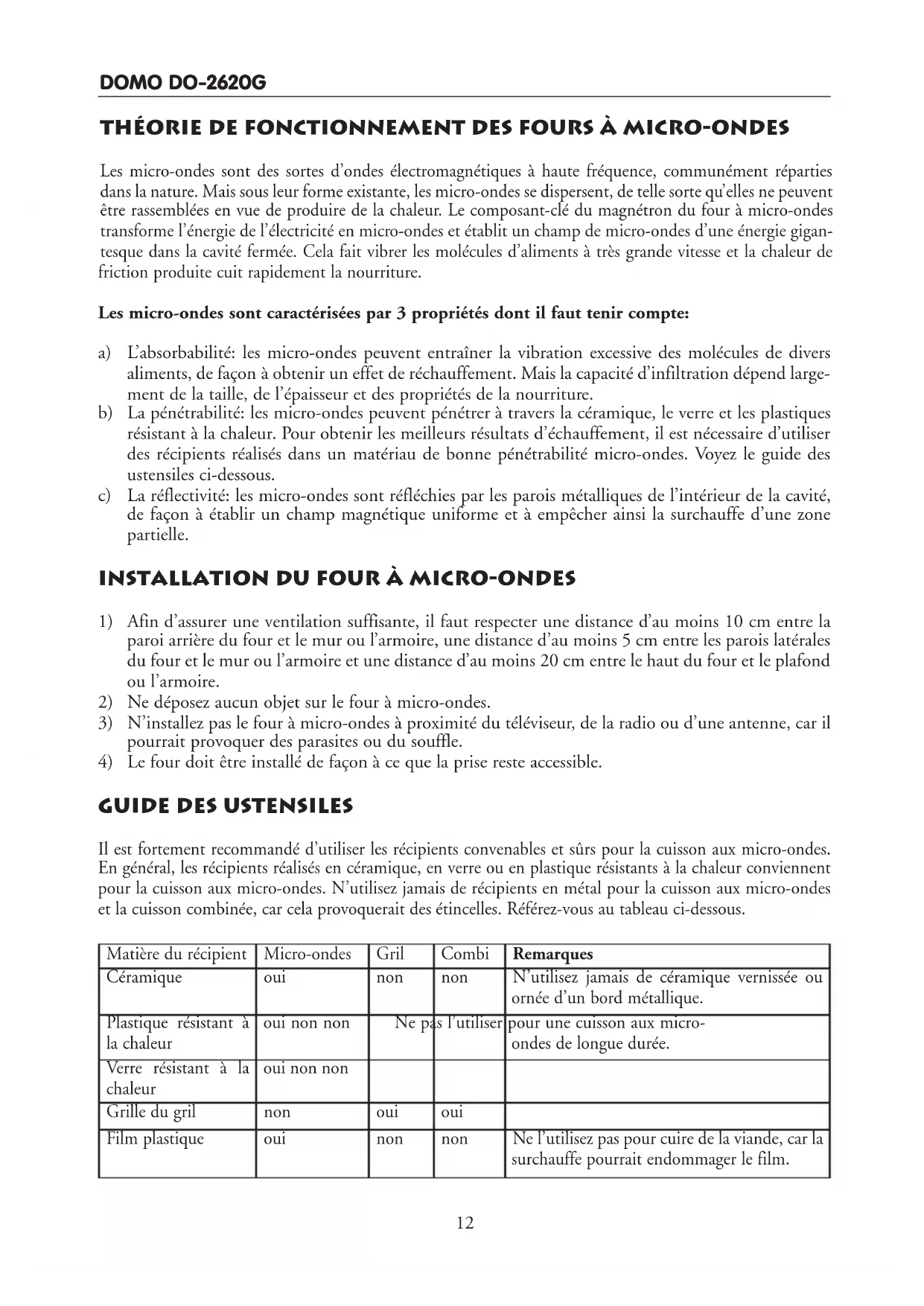 MODE D'EMPLOI DO2620G DOMO