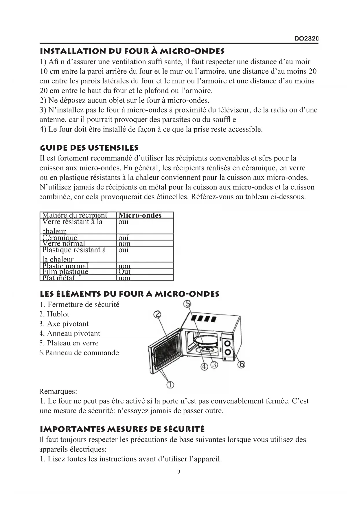 DO2320 - Four à micro-ondes DOMO - Notice d'utilisation et mode d'emploi gratuit