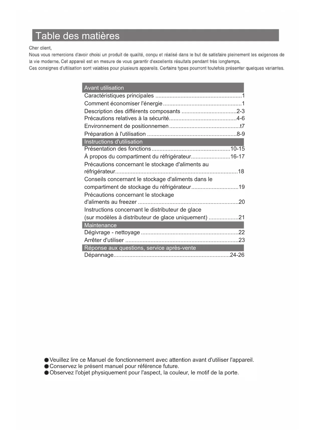 légères différences entre ceux-ci et ceux de votre réfrigérateur.