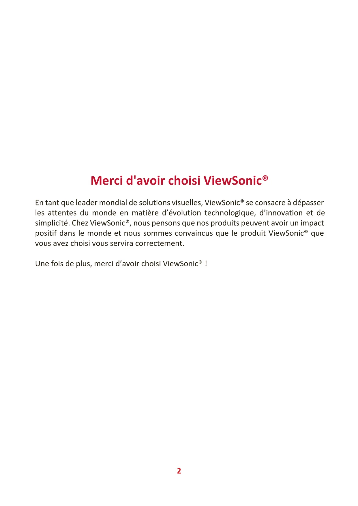 Une fois de plus, merci d’avoir choisi ViewSonic® !3