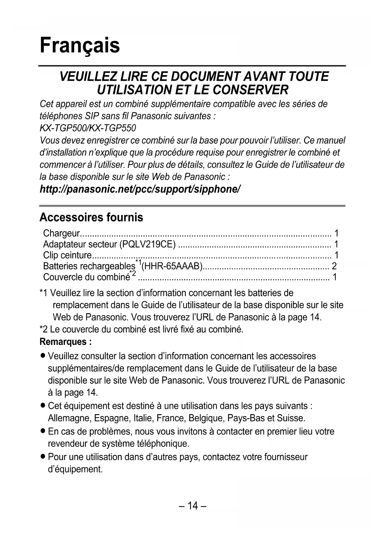 trouverez l’URL de Panasonic à la page 14.