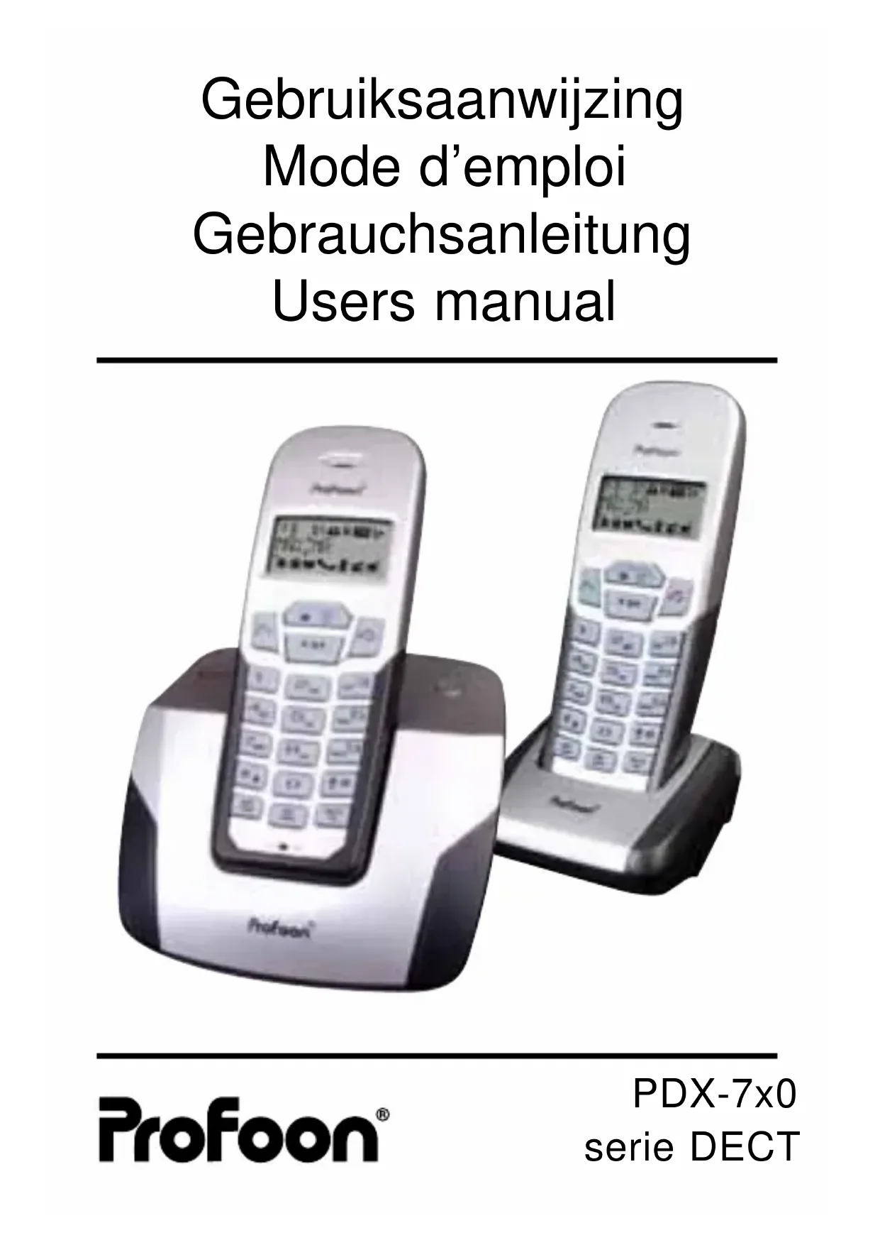 Téléchargez la notice de votre Téléphone au format PDF gratuitement ! Retrouvez votre notice PDX700 - PROFOON et reprennez votre appareil électronique en main. Sur cette page sont publiés tous les documents nécessaires à l'utilisation de votre appareil PDX700 de la marque PROFOON.