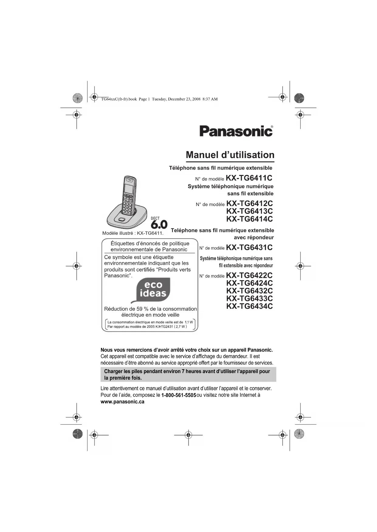 Téléchargez la notice de votre Téléphone au format PDF gratuitement ! Retrouvez votre notice KXTG6432 - PANASONIC et reprennez votre appareil électronique en main. Sur cette page sont publiés tous les documents nécessaires à l'utilisation de votre appareil KXTG6432 de la marque PANASONIC.