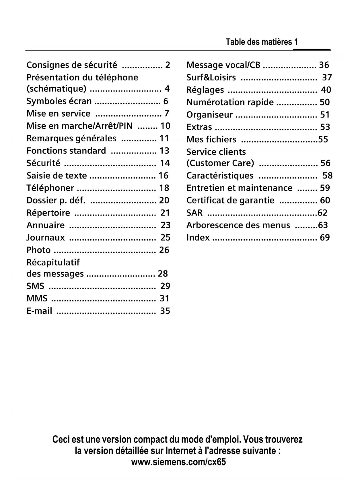 CXV65 - Téléphone mobile SIEMENS - Notice d'utilisation et mode d'emploi gratuit