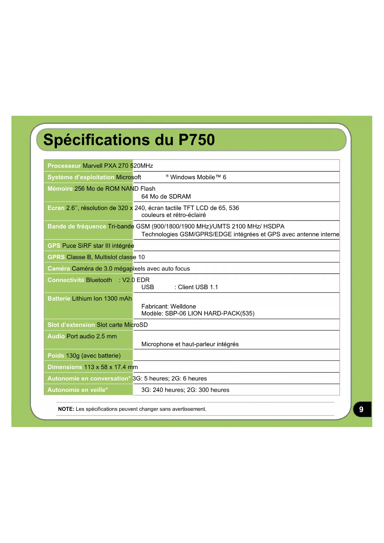 Retrouvez gratuitement la notice de l'appareil P750 ASUS au format PDF.