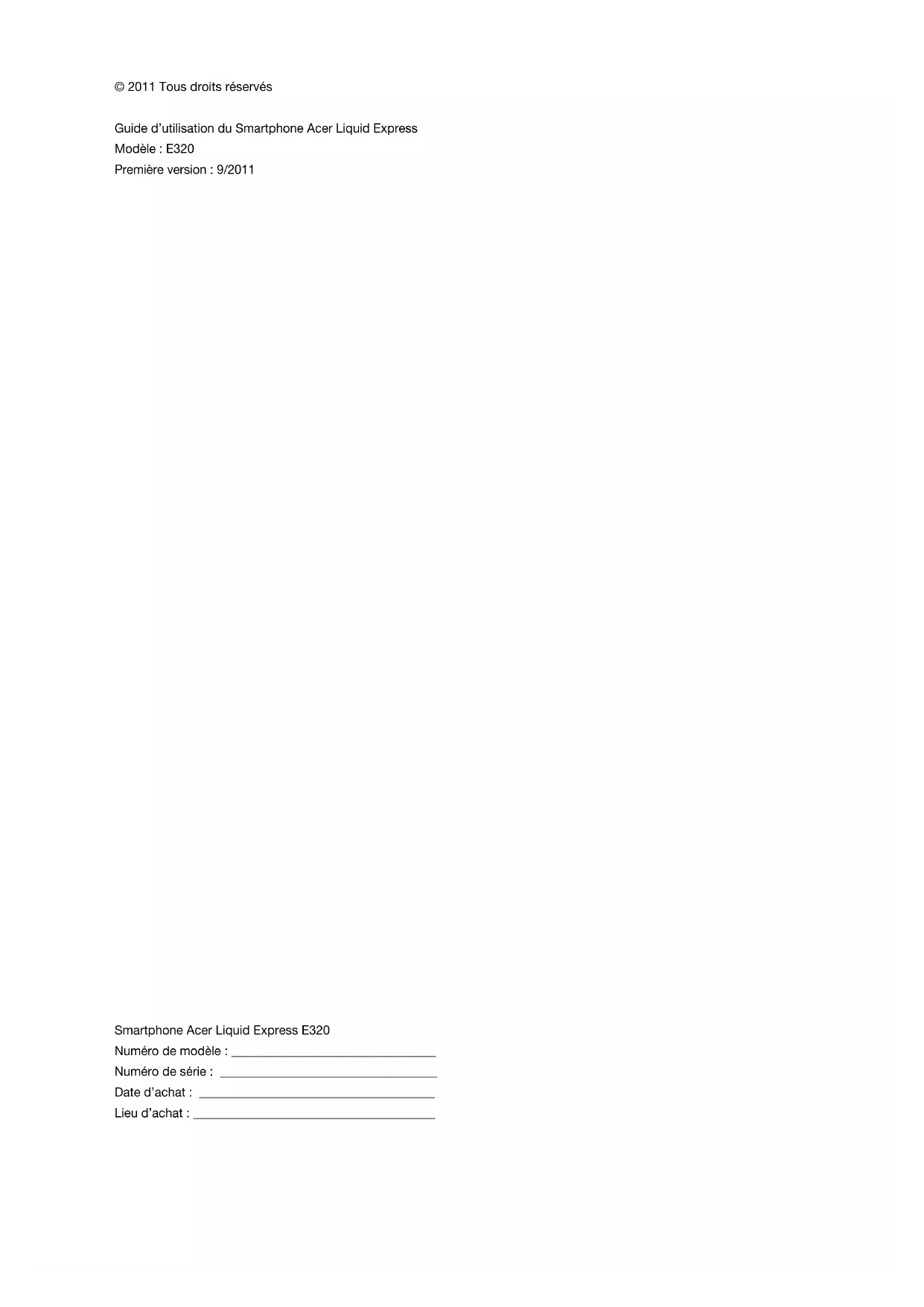 Liquid Express E320 - Téléphone mobile ACER - Notice d'utilisation et mode d'emploi gratuit
