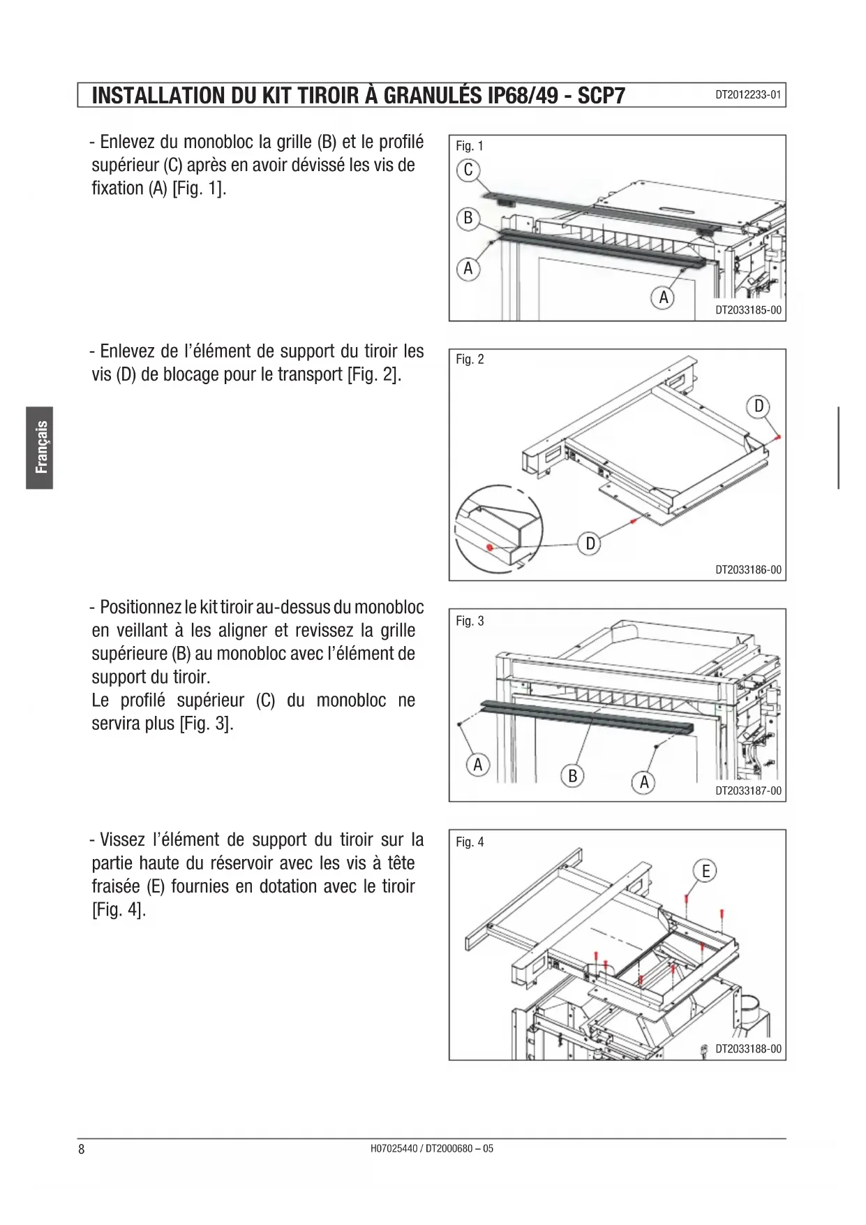 INSTALLATION DU KIT TIROIR À GRANULES IP78/58 - IP78/68 - SCP9 DT2012460-00