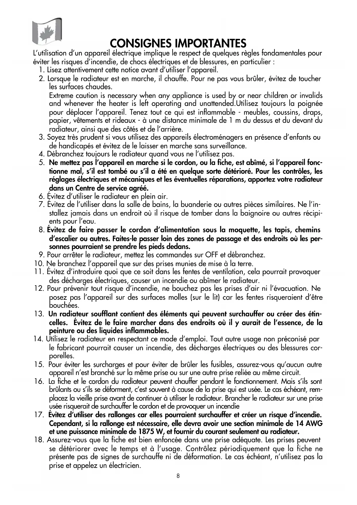 14. Utilisez le radiateur en respectant ce mode d’emploi. Tout autre usage non préconisé par