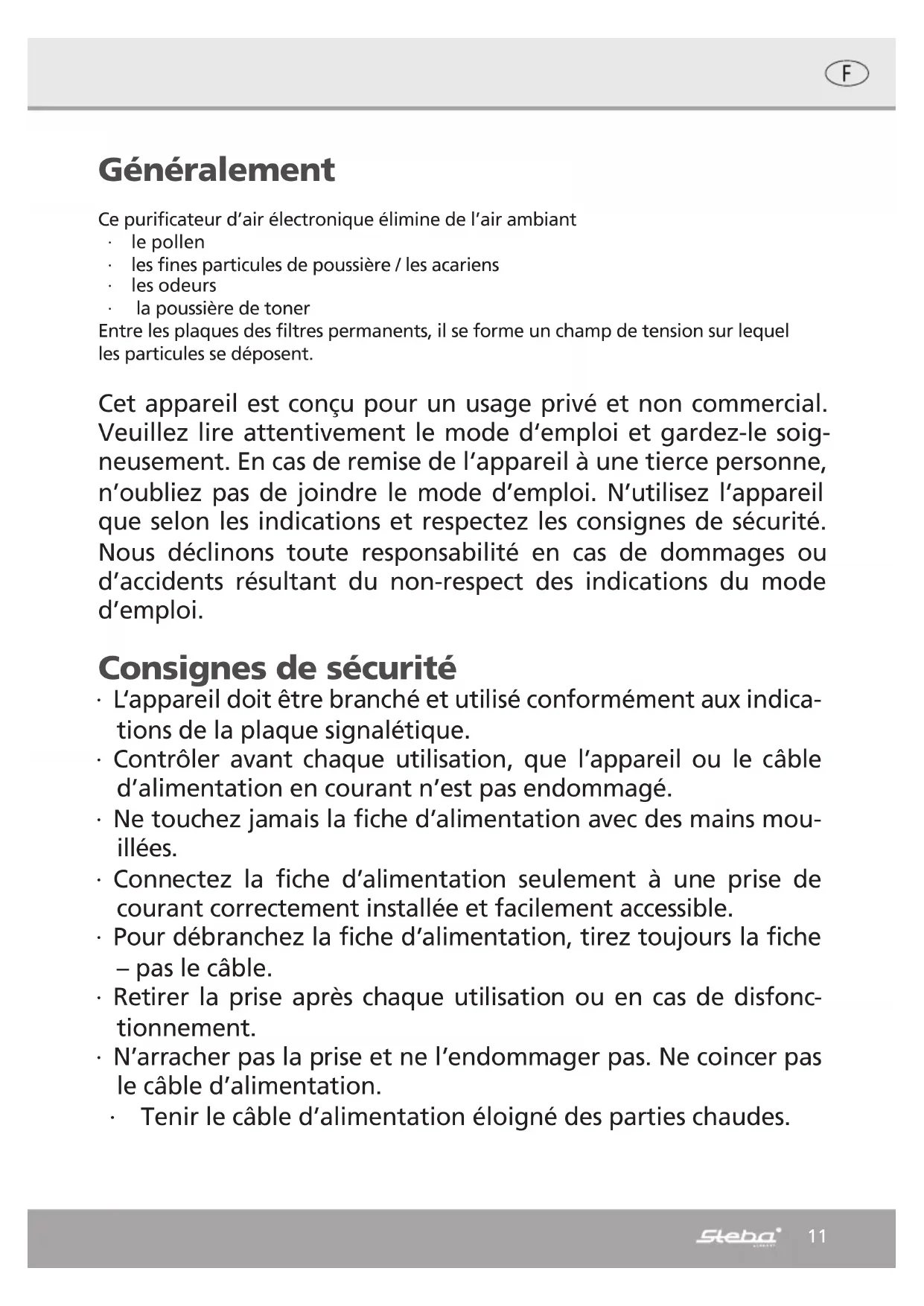 LR6 - Purificateur d'air STEBA - Notice d'utilisation et mode d'emploi gratuit