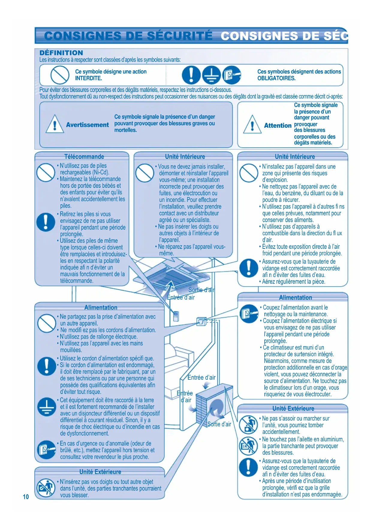 Refroidissement: ≥ 8°C Chauffage: ≥ 14°C PIECES NON SUSCEPTIBLES D’ETRE REPAREES PIECES NON SUSCEPTIBLES D’ETRE REPAREES PAR VOS SOINS PAR VOS SOINS METTEZ L’APPAREIL HORS TENSION et CONTACTEZ un