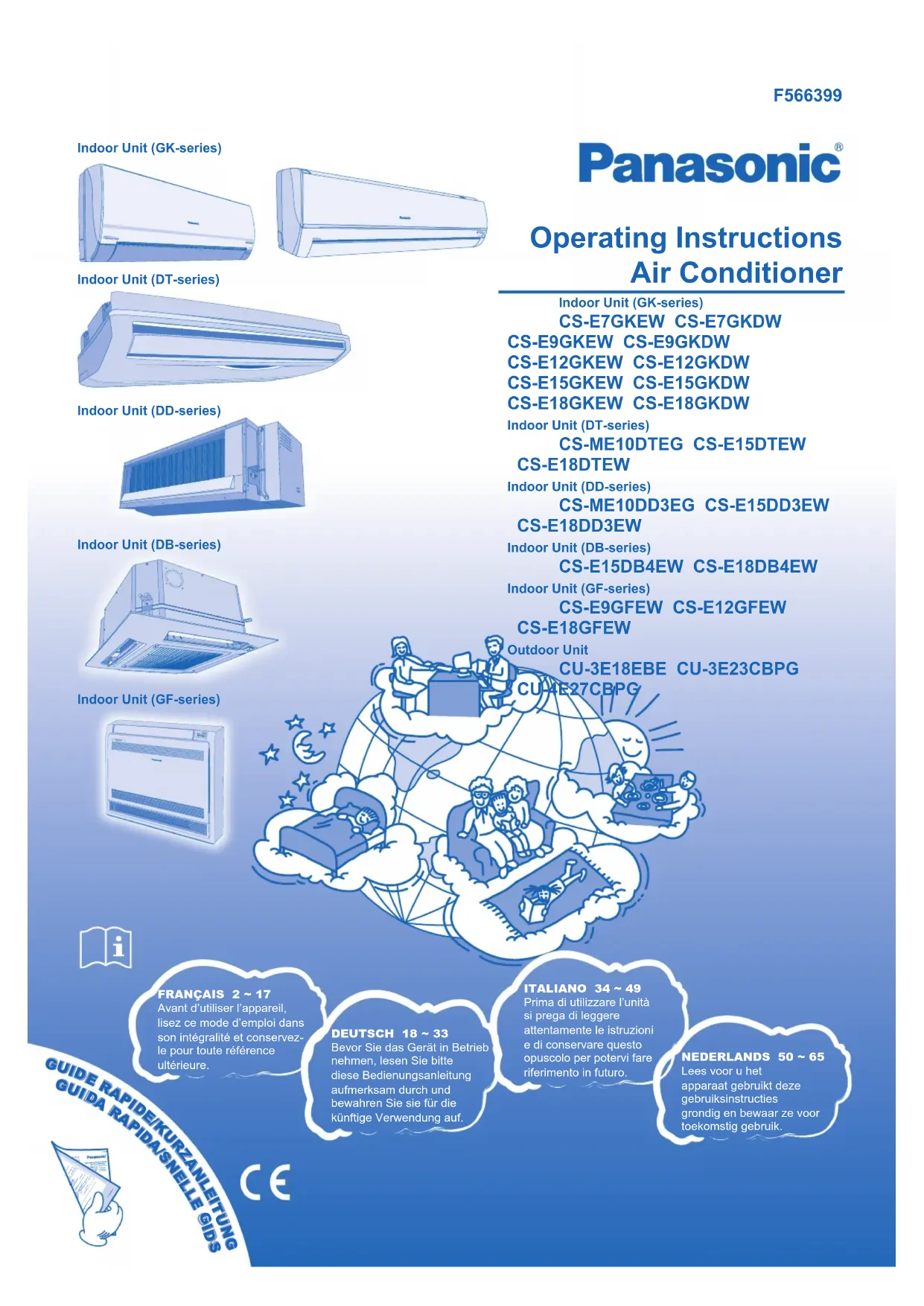 CSE12GFEW - Climatisation PANASONIC - Notice d'utilisation et mode d'emploi gratuit