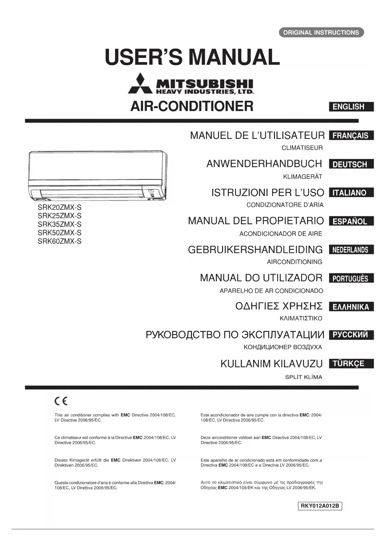 Ce climatiseur est conforme à la Directive EMC: 2004/108/EC, LV Directive 2006/95/EC.