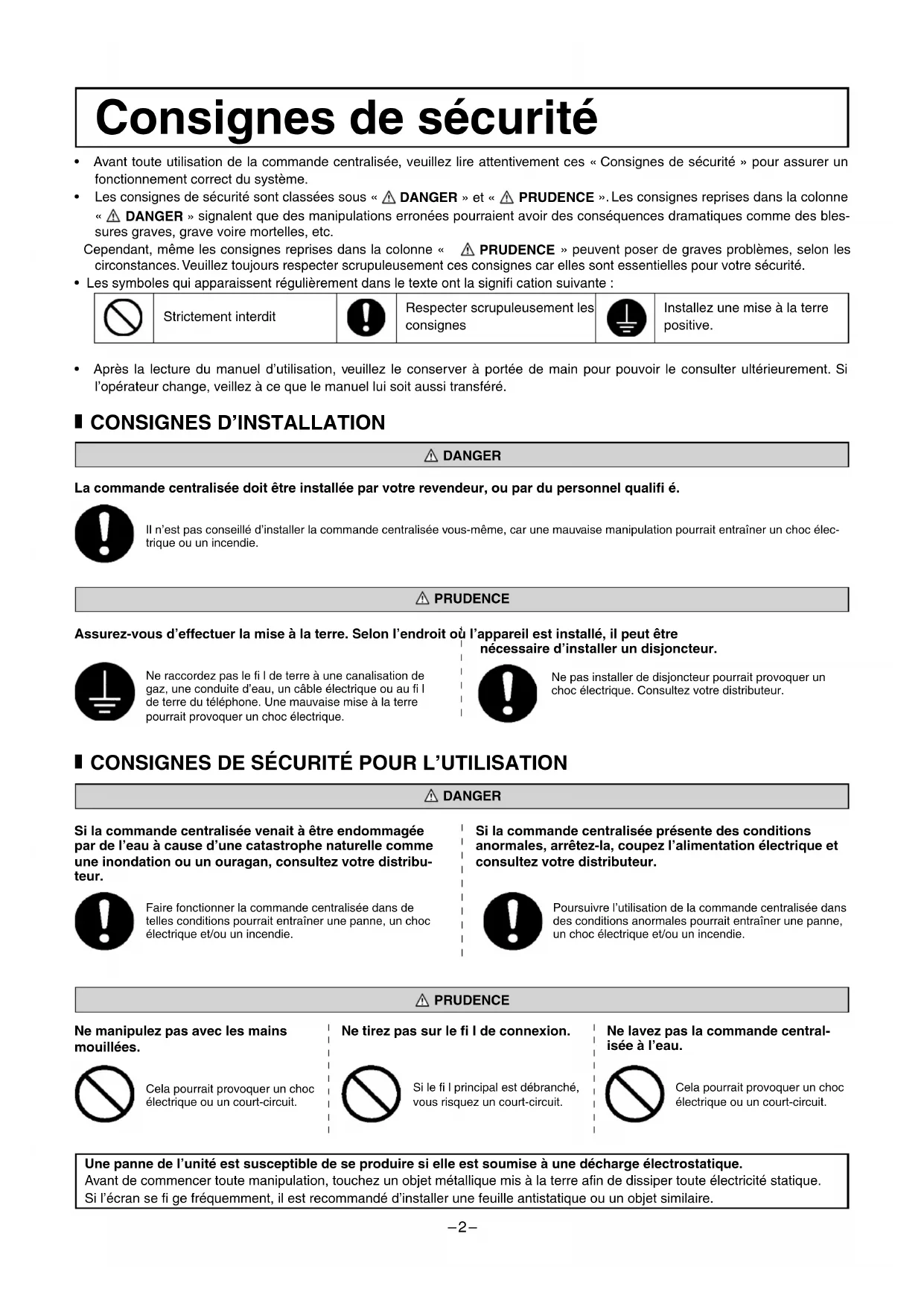 • Avant toute utilisation de la commande centralisée, veuillez lire attentivement ces « Consignes de sécurité » pour assurer un