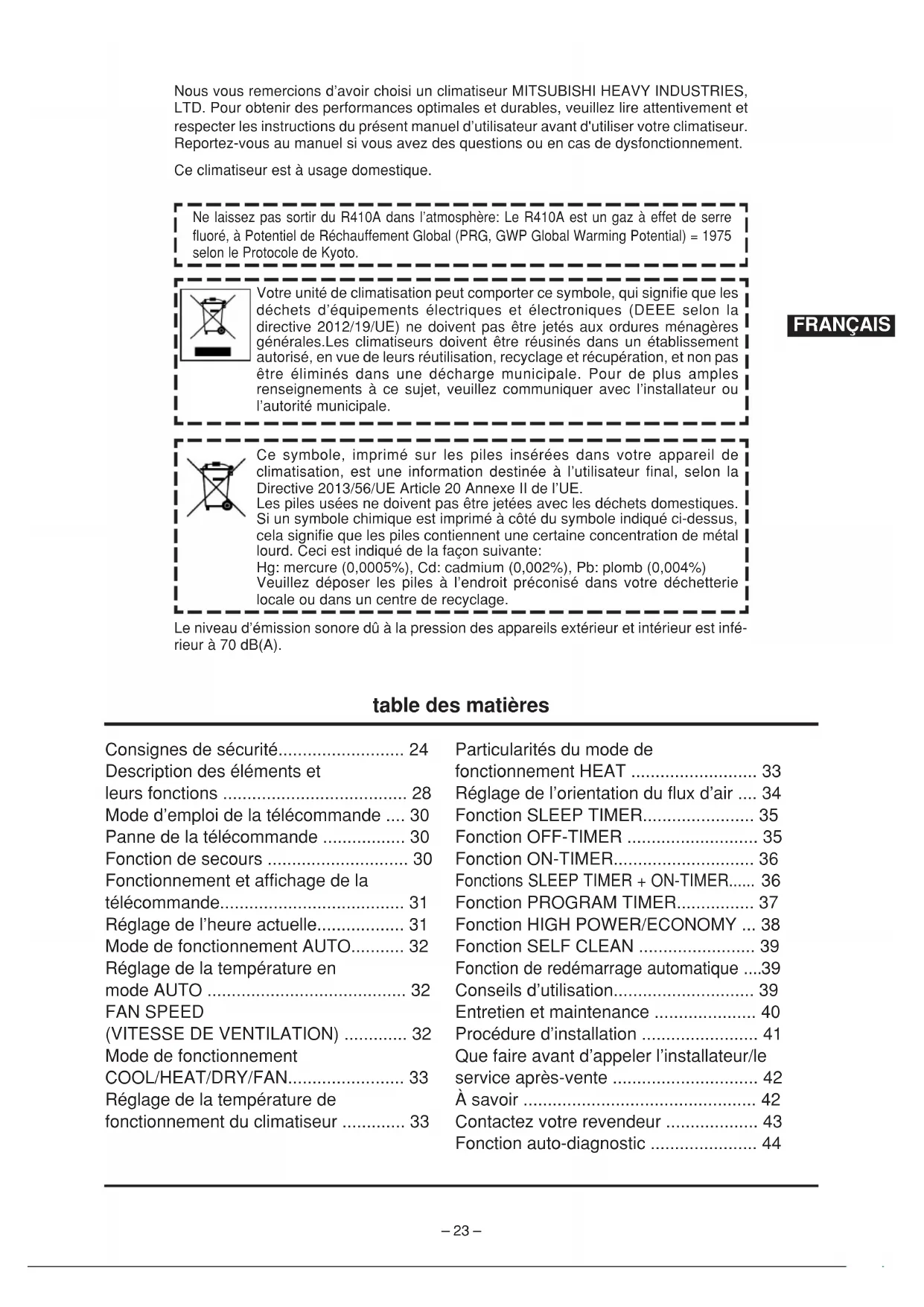 Nous vous remercions d’avoir choisi un climatiseur MITSUBISHI HEAVY INDUSTRIES,