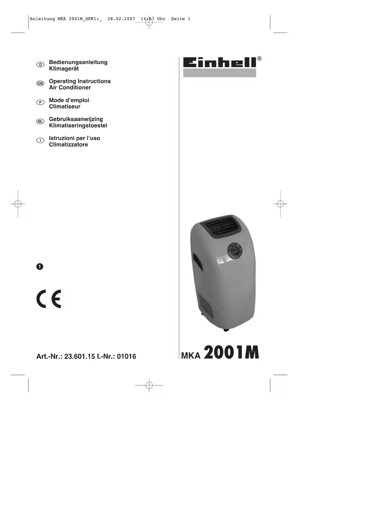 MKA 2001M - Climatisation EINHELL - Notice d'utilisation et mode d'emploi gratuit