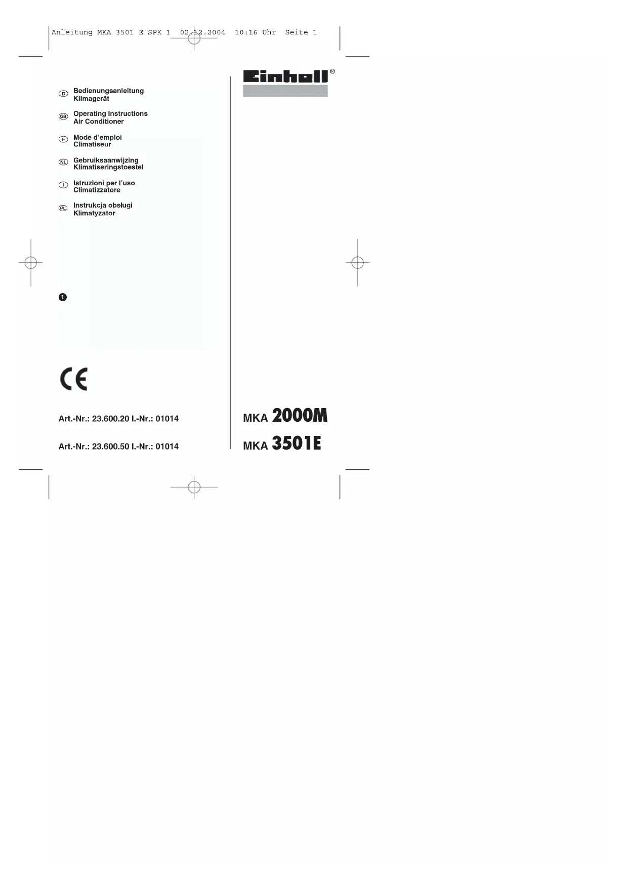 MKA 3501 E - Climatisation EINHELL - Notice d'utilisation et mode d'emploi gratuit