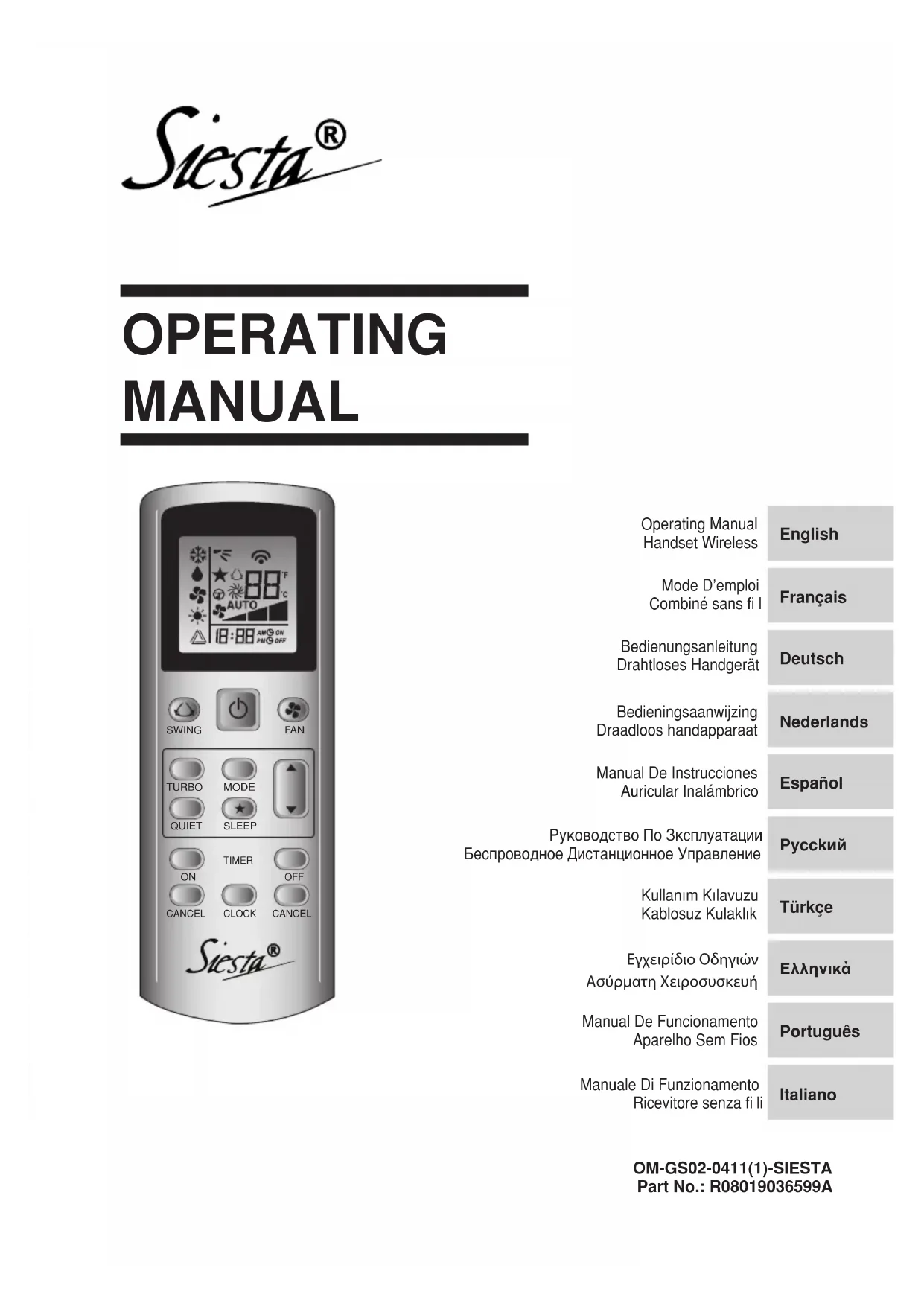 SWINGTURBOQUIETSLEEP ON CANCELCANCEL OFF TIMERCLOCK MODE FAN ON TIMER CANCEL