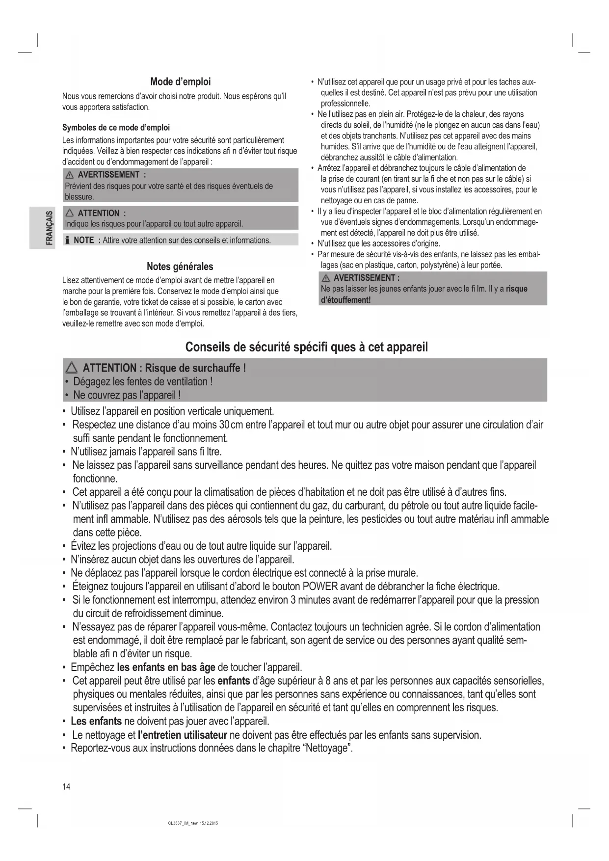 - Les enfants ne doivent pas jouer avec l’appareil.
